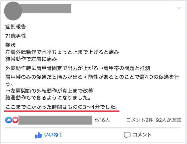 - たった3〜4分の施術で、肩が真上に上がるようになりました!